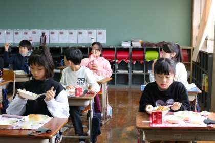 午前中授業が終わりました。つまり子どもたちが,待ちに待った給食のスタートです。