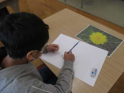 校庭に咲いている花の中からお気に入りの花を1つ選んで描きました。