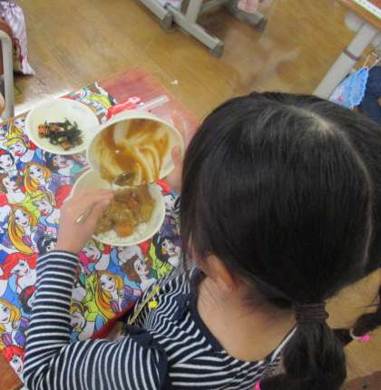 カレーライスは,大人気でした。「ちょーおいしい!!」「もっとおかわりしたい!」と大喜びで食べる人や,「ちょっとからいけどおいしい〜」と大人のからさを味わう人もいました。みなさんがたくさん食べてくれて,先生はうれしいです。がんばったかいがありました。