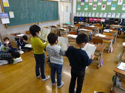 それぞれに かんがえたくふうが,きいている人につたわるように,がんばって読んでいます。