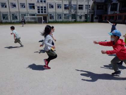 休み時間を使って,体育のリレーに向けて練習している姿を見つけました。自分たちから進んで運動することがすばらしいです。
