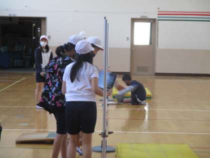 今日の体育の学習から走り高とびの学習を始めました。初めての学習だったので準備の仕方や気を付けるポイントなどを確認するところから始めました。GIGA端末も使いながら学習を深めていく計画を立てました!