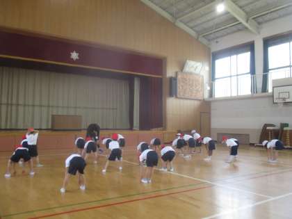 今日のからだほぐしでは,かえるやうさぎ,ワニなどの動物になりきって動いてみました。跳んだり,歩いたり…動物の特徴を捉えながら楽しむことができました。
