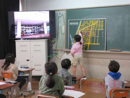 写真の施設が校区のどこにあるのかを地図を使って示す活動をしました。