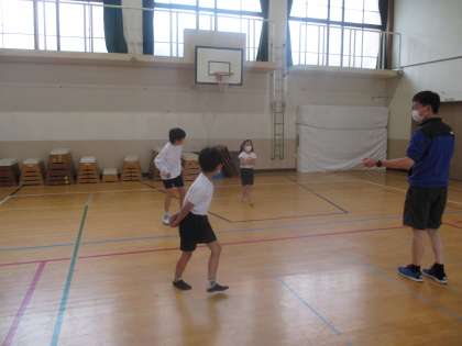 先生2人が鬼になり,みんな体の動きをうまく使って逃げていました。