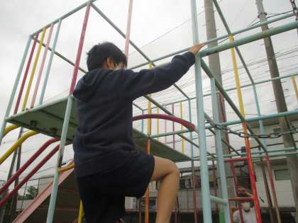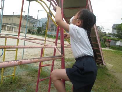 2年生は初めて,そのほかの学年は1年ぶりに使うので,改めて三点支持についての話をしました。話を聞いて安全に使うことができました。