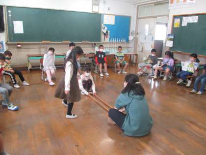 前回の2拍子の学習に引き続き,今日は3拍子の拍を体を使って感じ取っていました。