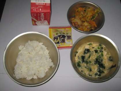 今日の給食は,ごはん・牛乳・夏野菜のかきあげ・かきたま汁・黒大豆でした。