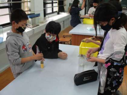 今日はものが燃える前と燃えた後の気体の割合の違いを探るために気体検知管を使って,酸素や二酸化炭素について調べました。