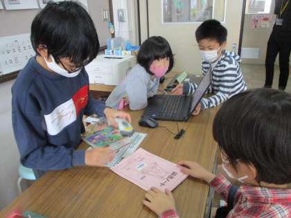 えのき学級の5年生が今日も図書委員として休み時間に図書室で仕事をしていました。