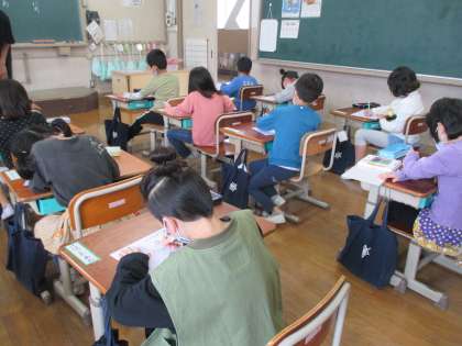 ひらがなの学習では姿勢良く文字を書くことができています。
