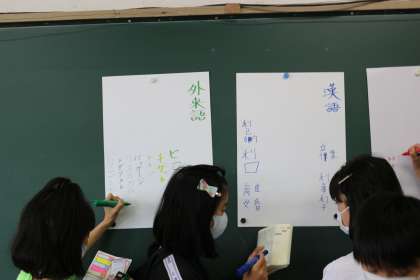 国語科の学習で,和語・漢語・外来語の学習をしました。古くから日本にある和語,中国から伝わった漢語。外国から入ってきた外来語。子どもたちは意味を理解した後,国語辞典を開き,そのページからこの三種類の語を見つける活動をしました。音読みや訓読み,表記方法で判断し,上手に言葉を集めることができました。