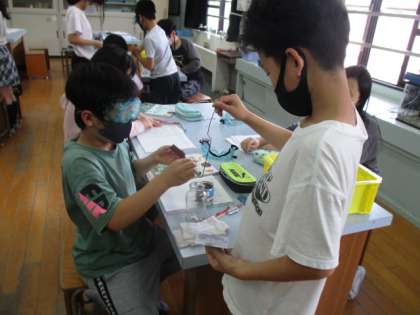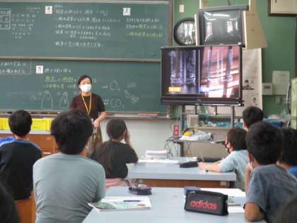 今日は石灰水を使って二酸化炭素の割合の変化について調べました。動画で実験の手順を確認した後,実際に実験を行い学習を進めていきました。