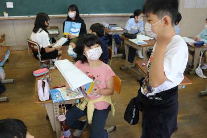算数科で,比例の学習をしています。「比例する」とはどのようなことなのかをつかみました。そして,今回は,表を作ったり,式の根拠を考えたりする学習の中で,自分の意見を上手にシェアしている子どもたちの様子が見られました。自分の意見や考えを伝えるだけでなく,相手の意見も聞くこと,とても大切ですね。学習の中でも,互いを大切にしている姿が見られ,とても素敵でした。
