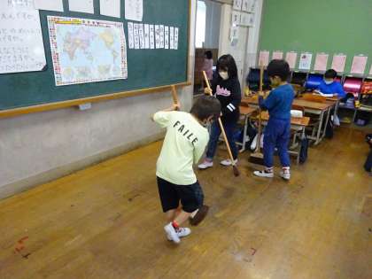 教室たんとうの人たちが,力をあわせて,あっというまに そうじをしてくれました!
