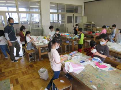 たくさんの材料に囲まれて,子ども達は思い切り自由に工作の時間を楽しみました。
