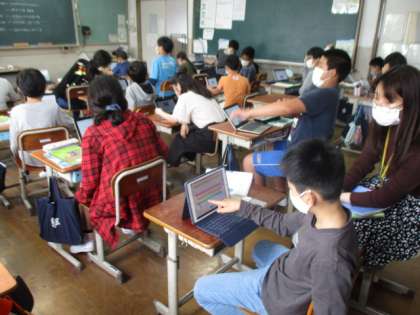 今日の理科の時間にはタブレット端末を使って,学習内容の確認やテスト勉強を行いました。来週明けのテストが楽しみです。