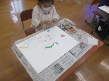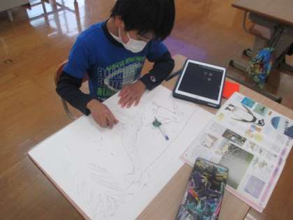 一人ひとり自分が書きたい生き物や食べ物をうまく組み合わせて,下書きをしました。