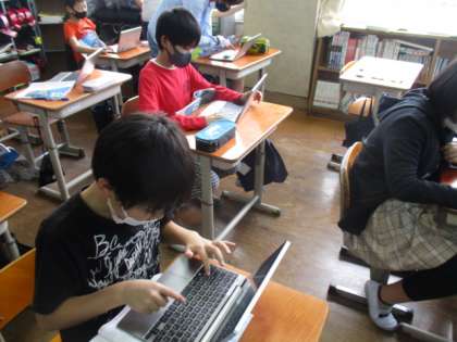 社会科では,今日から新しい単元に取り組んでいます。今日は,GIGA端末を使ったり,教科書を使ったりしながら単元を通しての学習問題を立てました。
