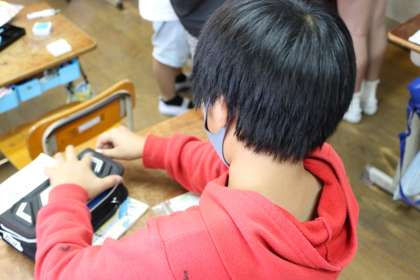 家庭科の学習で,裁縫をしています。今回は初めての学習だったので,まず道具の名前について知ったり,注意の確認をしたりしました。そして,道具の使い方を知った上で,玉止め・玉結びについて学び,実際にやってみました。何度も繰り返し練習していくことで,上手にできるようになったという子どもも増えてきました。これからさらに学習を進め,さらに色んなことができるよう,楽しみながら頑張っていきたいと思います。