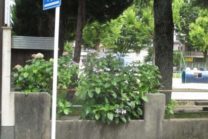 飛鳥井公園と学校の紫陽花が咲き始めました。ちゃんとこの時期に咲いてくれる紫陽花。実はこの紫陽花ですが,花びらみたい見えますが。これは「がく」が変化したものだそうです。また,育った土壌によって色が変化するそうです。