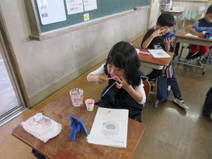 子ども達はどういった所が染まってしまうのかを考えつつ,歯磨きをしっかりすることができました。