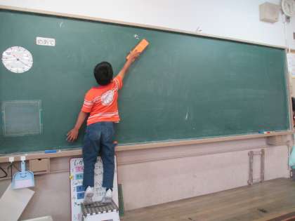 休み時間に率先して黒板を消してくれたり,机をきれいに並べてくれたりしてとても嬉しいです。1年生には心優しい人がたくさんいます!