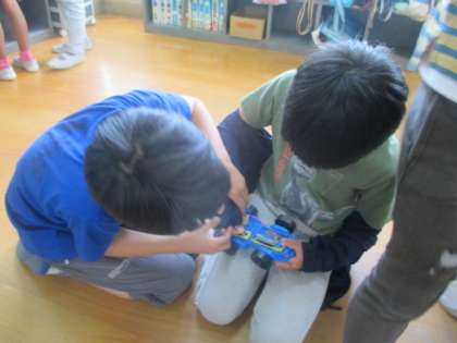 どこにつなげばいいのか,先生の見本を見ながら友達と協力して楽しみながら,動かしていました。