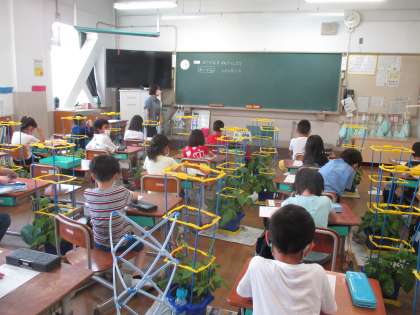 1年生の教室に行くと,アサガオの観察をしていました。だんだんと大きくなっていて,うれしそうにしている1年生。ふと自分の小学生の頃を思い出してみると,アサガオを育てた記憶があります。約40年前と同じことを学習しているんだなと思うと,なんだか感慨深いです。ただ違うのが,約