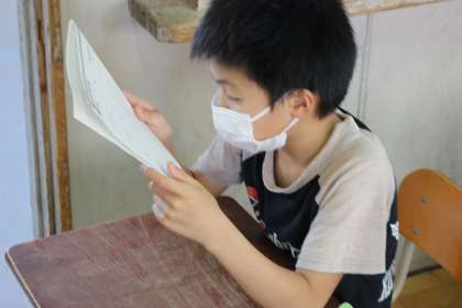 ベーシックの時間。頑張っています。この日は読み上げ計算を頑張りました。今回の問題は,図形から面積を求めていく計算でした。限られた時間の中で,一問でも多く答えることができるようにと,集中して頑張る姿がとても素晴らしかったです。