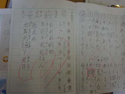 きのうのかん字のしゅくだいは,先生のお手本なしで れんしゅうすることにチャレンジしました。