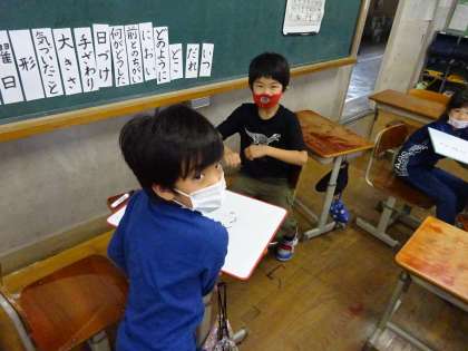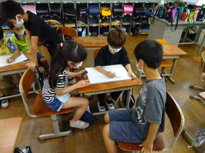 チームできょう力しながら,かん字を書いていました!