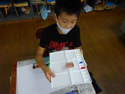 とても うれしそうな,けれど しんけんな かおで,水をつかったり,色をぬったりしていました!