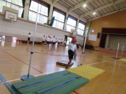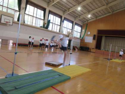 今日は初めての学習なので,踏切の足を確認することを中心にがんばりました。