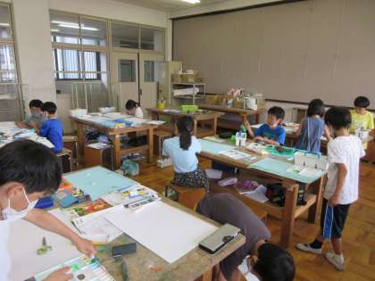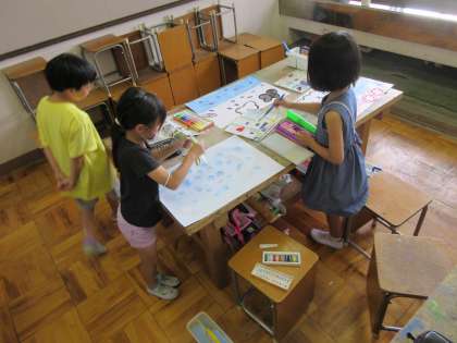 絵の具のにじみ具合を上手に活用したり,ローラーを使ってみたり。