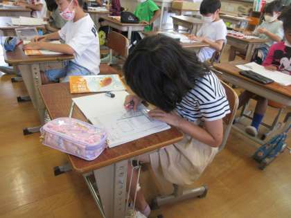 学習してきた垂直と平行の描き方を利用して,長方形や正方形を描きました。