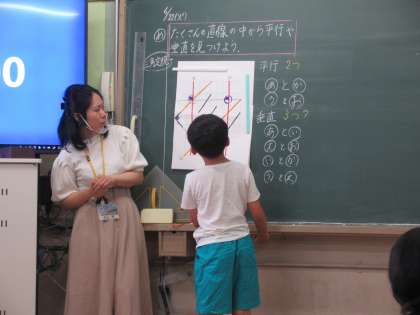 たくさんの直線の中から,垂直や平行の関係になっているものを探す活動をしました。