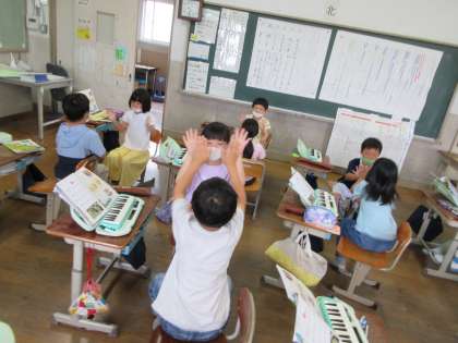 茶摘みの曲に合わせて手遊びをしました。