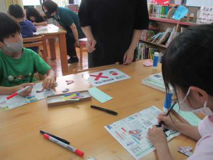 21日(月)にぶっくままくらぶがありました。1年生もたくさん参加しました。読み聞かせをしてもらったあとに,七夕かざりをつくりました。とても可愛らしい作品ができて,子どもたちも大喜びでした。