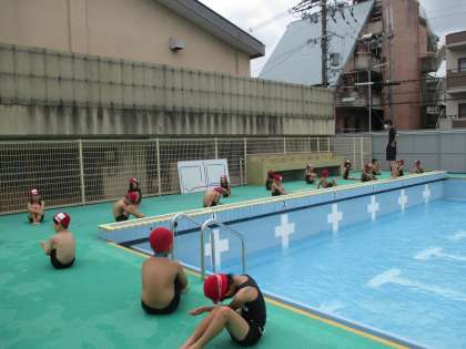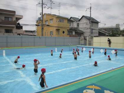 子どもたちが待ちに待った水泳学習がスタートしました!プールの中を歩いたり,ワニさん歩きをしたりと水遊びができて大喜びな子どもたちでした。バディチェックもしっかりできています。