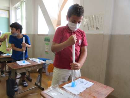 子ども達は全く動かないピストンに,本気で力を込めていました。