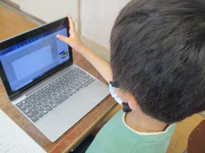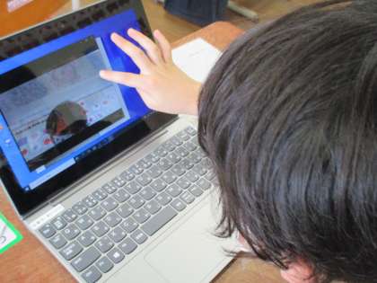 今日は二回目のタブレット学習でした。最初の時よりも,スムーズにログインすることができていました。今日はペイントだけではなく,タブレットについているカメラを起動し,実際に自分の写真を撮りました。どんどんできることを増やしている子どもたちです。