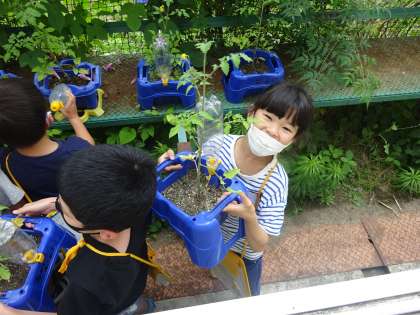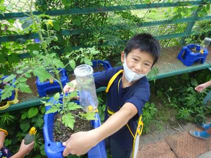 生かつかで,そだてているミニトマトが大きくなってきました。