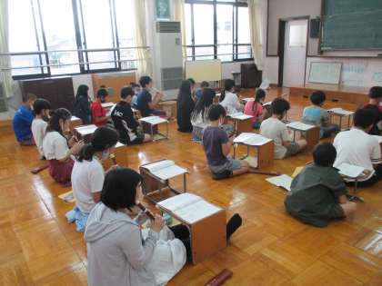 音楽の時間には,みんなで「ラバースコンチェルト」という曲をリコーダーで練習しました。次回の音楽の授業でリコーダーのテストを行うため,子どもたちは目の色を変えて必死に取り組んでいました。