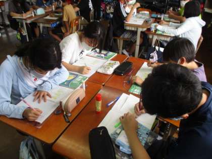 算数の学習では,これまで習ってきた資料を複数組み合わせて読み取っていく問題を取り組みました。AとBを組み合わせて考えるということで難易度が上がります。そんな時は,一人で抱え込まず,班の助けを借りて解決へと進んでいきます!
