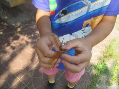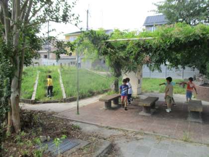少し前になりますが,晴れている日に「なつみつけ」をしました。春のときとは違い,とんぼやあさがおなど夏を感じる生きものや花をたくさん見つけました。また暑くても木の下や土管の中は涼しいという発見をしている子もいました。