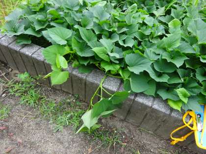 つるがのびて,花だんから はみだしていました。
