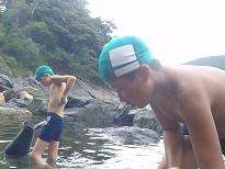 3日目の朝は雨の音で目が覚め,今日の活動ができるか心配でした。予定を変更して,全員で午前中は磯観察,午後はスノーケリングをすることとなりました。雨の影響で磯観察は少し短い活動時間となりましたが,磯のカニや貝など生き物を見つけて子どもたちは大はしゃぎでした。