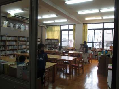昼休みに体育館から楽しそうな声が聞こえてきました。1年生が鬼ごっこを楽しんでいました。雨の日は,順番に体育館が使えるのです。雨でも思い切り遊べるのはいいですね。図書室では,静かに本を読んでる姿もありました。ほかの子どもたちは,教室で静かに過ごしていることでしょう。