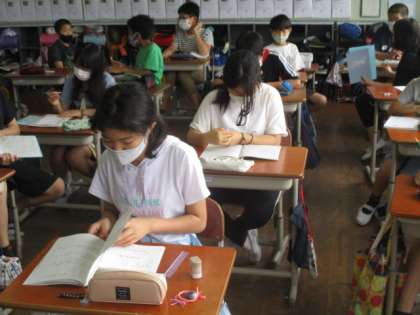 今日はこれまでの学習内容の定着を確認するために単元末テストに取り組みました。テスト前には,教科書やノートを見ながら復習している姿もたくさん見られました。